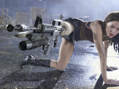 Após ter a perna devorada por um zumbi, a belíssima Rose McGowan, usa o toquinho restante para adaptar uma metralhadora. Tornando-se então uma heroína sexy e mortal. Fiquei fã! É a tosquice elevada ao cubo! rsss